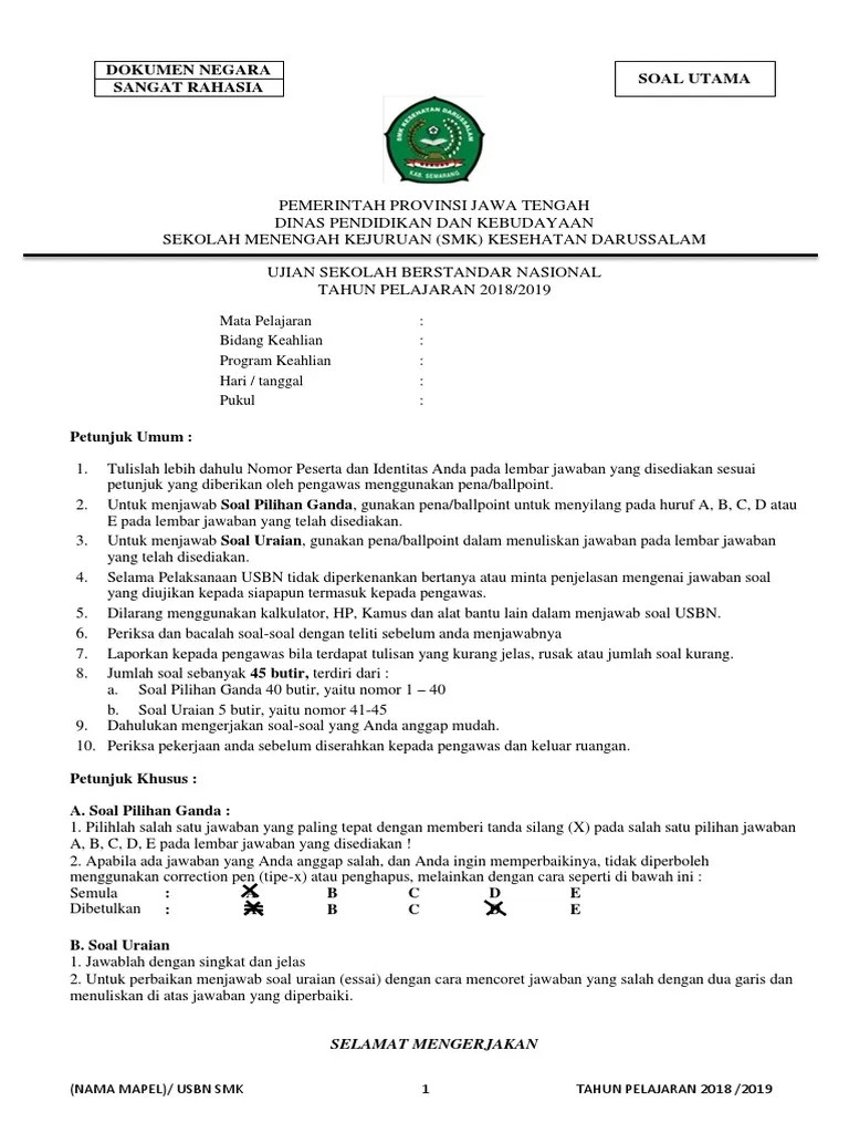 Penelitian ini bertujuan untuk mendeskripsikan hasil analisis soal usbn bahasa indonesia di smp semesta semarang dan memaparkan . Bacalah kutipan berikut dengan saksama! Kegiatan usbn di smp negeri 19 semarang diikuti oleh seluruh siswa kelas 9. Latihan soal usbn bahasa jawa sekolah menengah kejuruan tahun pelajaran latihan. " mau jenang, mbok ?" hari itu sabtu legi, weton saya.